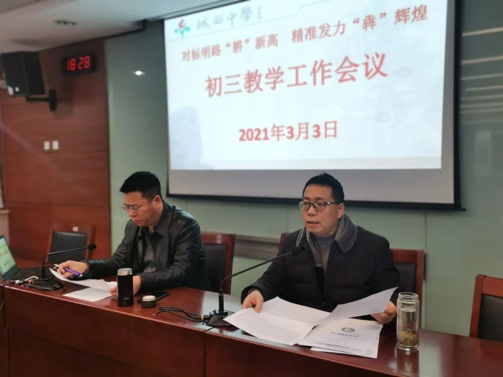 春日融融,万物复苏,校园内花蕾含苞吐露,预示着希望和朝气,也提醒着城西人惜取好春光,奋斗正当时!为激励初三教师以高昂的状态投身到新学期教学工作中来,2021年3月3日,城西中学召开了本学期第一次全体初三教师会议。会议由校长助理秦嵘校长主持。