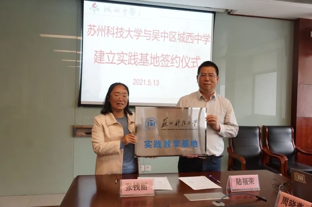 2021年 5月13日下午,苏州科技大学与吴中区城西中学建立实践基地签约仪式在城西中学骋怀厅举行。