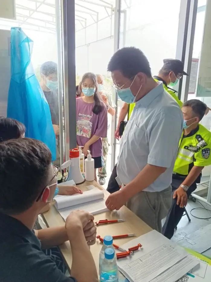 校长陆福荣亲自带领学校精干力量和城西中学家长义工现场组织学生们有序接种疫苗。